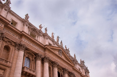 Detail of the facade of Saint Peter basilica, Vatican City, Rome, Italy
