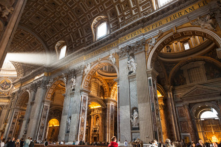 Interior of Saint Peters basilica with a ray of light from the window. Vatican