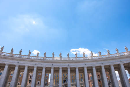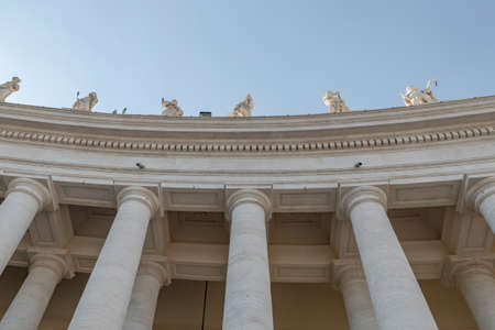 Colonnade of St Peters Square in Vatican City. Row of Old Big columns.