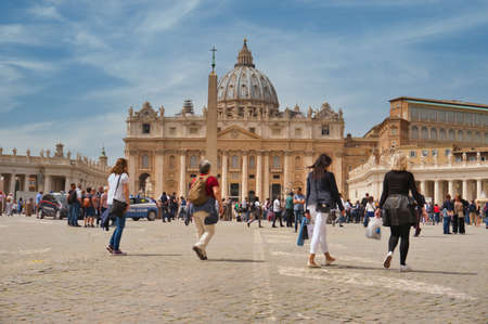VATICAN CITY, VATICAN - OCTOBER 17: Tourists at Saint Peter's Square on October 17, 2014 in Vatican City, Vatican. Saint Peter's Square is among most popular pilgrimage sites for Roman Catholics.