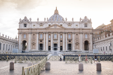 ROME, ITALY - SEPTEMBER 23, 2015 : Side view of St Peter's Basilica at St Peter square in Vatican, on cloudy blue sky background at sunset time.