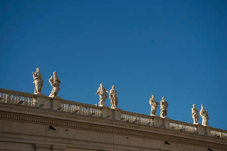 Vatican City Italy October 18, 2019 View of marble statues located at the St Peter's Basilica square in the Vatican City in the afternoon