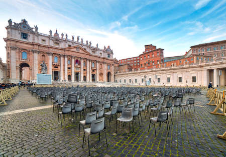 View of empty chairs in Saint Peter's Square in Rome Vatican