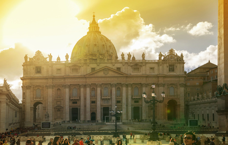 ROME, ITALY - APRIL 8, 2016: Basilica of St. Peter in the Vatican against of sunset