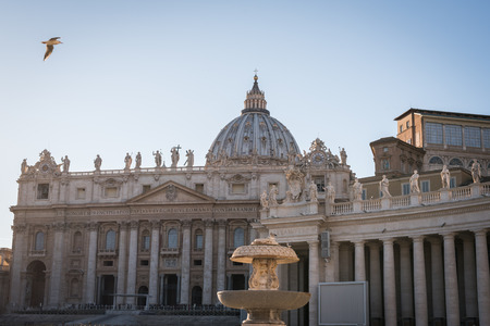 VATICAN - JANUARY 2, 2019: sunset light is enlightening the Basilica of Saint Peter in Vatican City