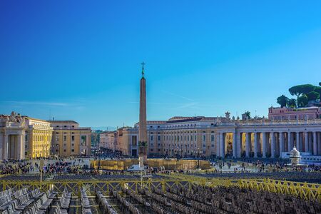 VATICAN CITY, VATICAN - DECEMBER 26, 2016: chairs in front of Basilica of Saint Peter of Vatican City in DECEMBER 2016. the mild climate makes Rome a perfect destination for Christmas pilgrimage