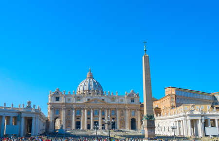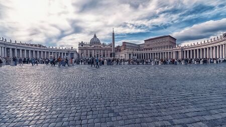 VATICAN CITY, ITALY- APRIL 08: Saint Peters Square and Basilica in Vatican City on April 08, 2019