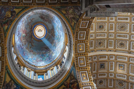 Rome, Vatican, Italy - June 21, 2015: Rome Vatican Italy light beam inside St. Peter's Basilica Dome