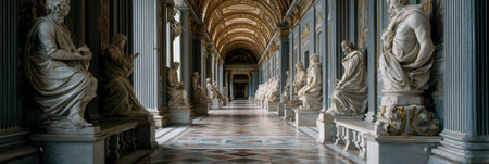 Explore the majestic Vatican corridor lined with stunning marble statues, showcasing intricate artistry amidst a tranquil atmosphere of elegance and history.