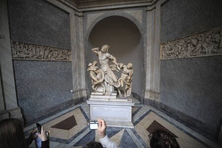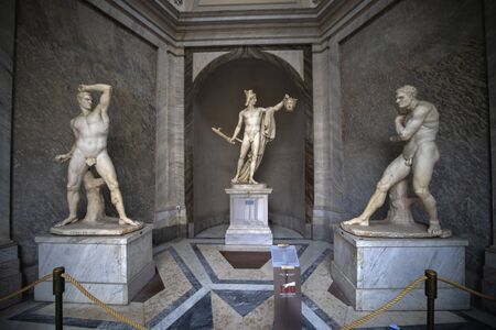 Vatican, Italy - January, 04, 2020. Ancient Greek and Roman statues on display of the Museums of Vatican. The Museum holds one of the biggest collection of ancient art objects.