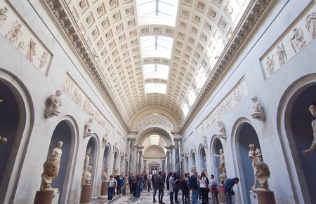 ROME, ITALY-OCTOBER 17: unidentified tourists visiting the Vatican Museums on October 17, 2011 in Rome, Italy. Their founding base was the private collection of Julius II, who was elected pope in 1503