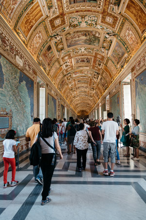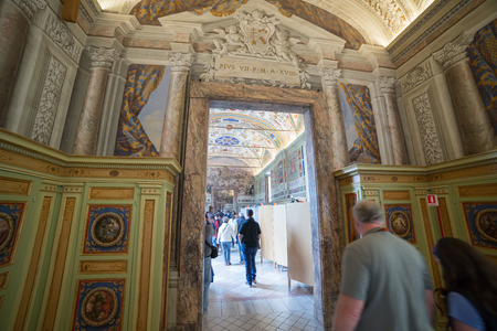 Rome, Italy - August 19, 2016: Interior view of tourists in Vatican Museums. The Vatican Museums are Christian and art museums located within the city boundaries of the Vatican City