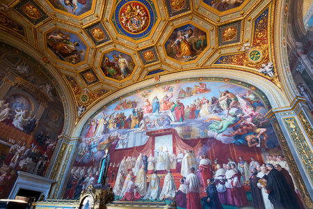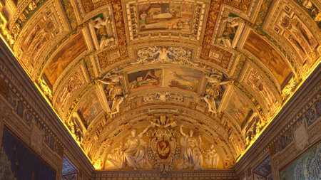 Vatican, Italy - January, 4, 2020. Ceiling of the Museum of Vatican. The Museum is one of the most famous travel distinations of the world.