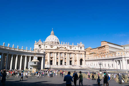 VATICAN CITY, VATICAN - OCTOBER 17: Tourists at Saint Peter's Square on October 17, 2014 in Vatican City, Vatican. Saint Peter's Square is among most popular pilgrimage sites for Roman Catholics.
