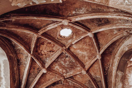 BRNO, CZECH REPUBLIC - MARCH 10, 2022: The stone vault with cross shape in the chamber of Old Town Hall, on March 10 in Brno, Czech Republic