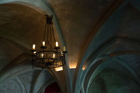 Old candelabra in vaulted roof