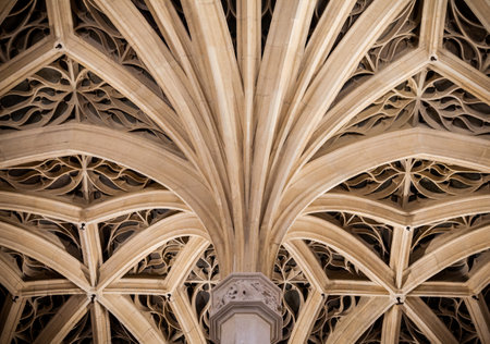 A captivating view of an intricate Gothic arch ceiling, featuring detailed patterns and textures that highlight the elegance of architectural design in a modern context.