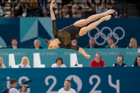 KAYLIA NEMOUR (ALG) of Algeria, competes in the Artistic Gymnastics Women's All-Around Final at the Bercy Arena during the 2024 Paris Summer Olympics in Paris, France.