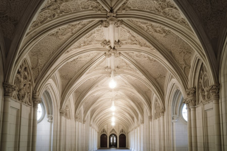 vaulted cathedral ceiling with detailed stone carvings, created with generative ai