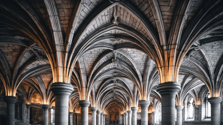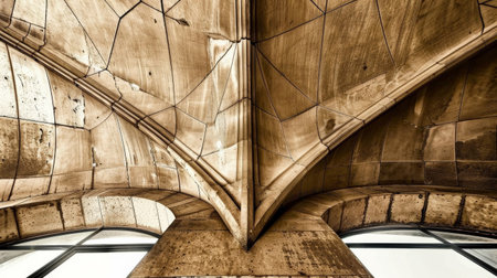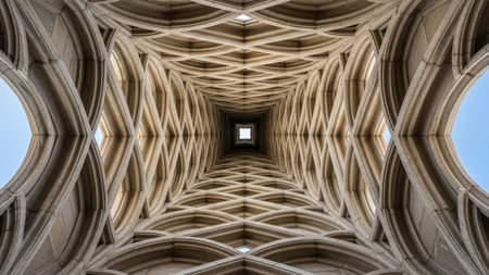 A captivating view of an intricate Gothic arch ceiling, featuring detailed patterns and textures that highlight the elegance of architectural design in a modern context.
