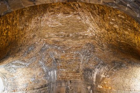 Vaulted ceiling of red brick and concrete