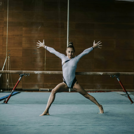 Graceful gymnast performing an elegant routine