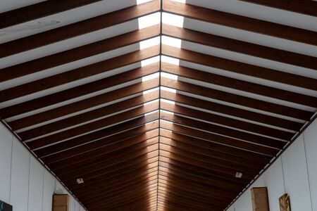 The inner roof consists of wooden beams and lets natural light through in the middle