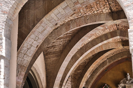 masonry arches in the medieval town of spello umbria