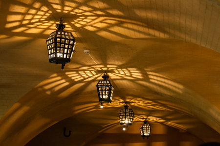 Antique lamps (chandeliers) in the cave dungeon