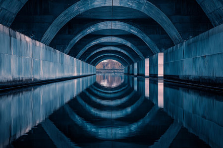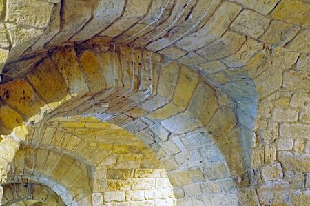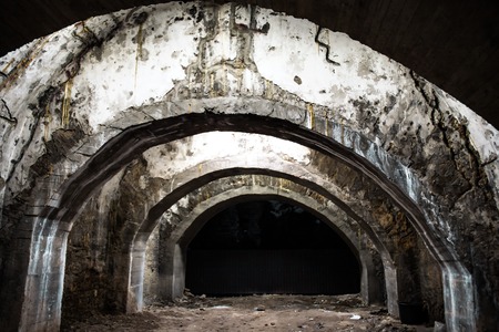 Mysterious stone tunnel with arched ceilings
