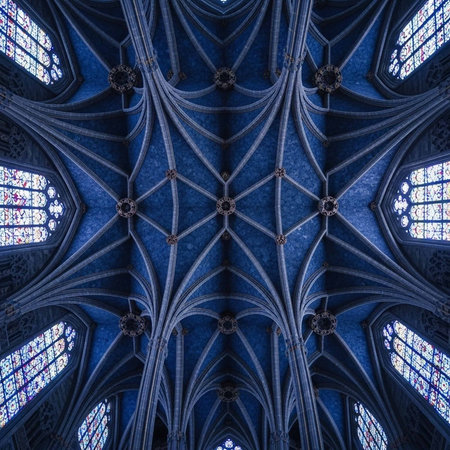 vaulted cathedral ceiling with detailed stone carvings, created with generative ai