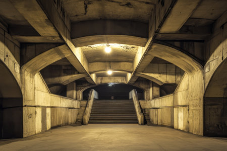 A blank closed underground hall, exuding mystery and concealed potential. What secrets lie within this secluded space
