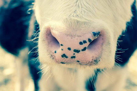 Calf in the barn. Farm animal. Vintage style toned