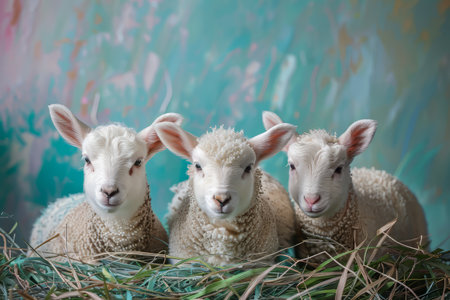 Easter art with 3 lambs. Sheep. Happy easter. High quality photo