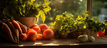 minimalist kitchen counter with vibrant vegetables neatly arranged generative ai