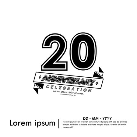 20 Years Anniversary Celebration Logo Vector Template Design Illustration Black and White