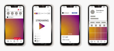 set of smartphone with social media icon in cute design. (smartphone with social media application, with various icon and layout in use) easy to modify