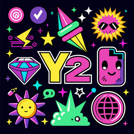 Retro Rave Star Symbols with Acidic Vibe and Groovy Patterns
