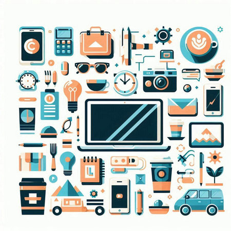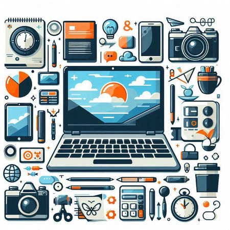 An AI illustration of An AI generated illustration of A diverse selection of modern electronic devices laid out on a flat surface