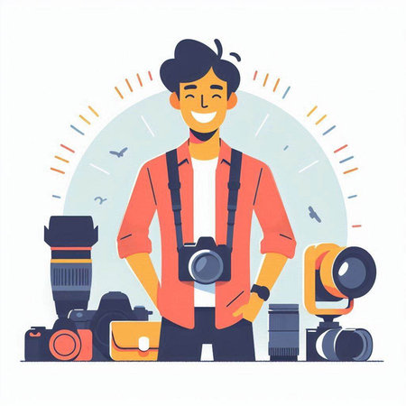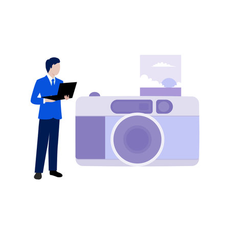 photograph journalist flat vector clipart illustration website style profession job work isolated collection poster simple illustration artwork