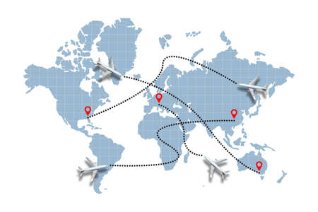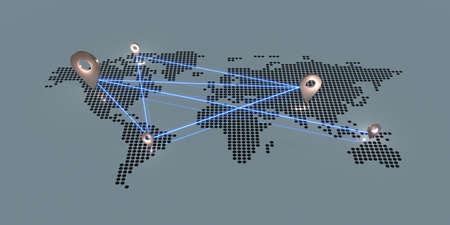 Global Navigation System: World Map with Location Pins for Business Travel & International Transportation