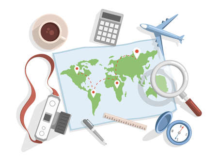 World map with location points vector flat illustration. Planning summer vacation, journey vector flat illustration.