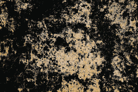 A close-up view of an abstract texture featuring a blend of black and gold colors. The image showcases a grunge-like pattern with splattered and scattered gold elements against a dark background.