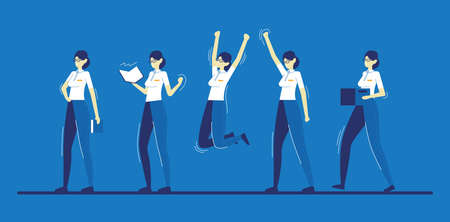 Various poses of a businesswoman. Color vector cartoon flat illustration isolated on white