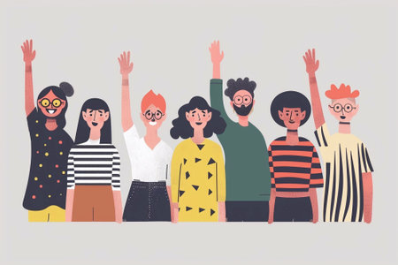 A diverse group of friends joy waving and smiling together. inclusivity unity and togetherness, for posters and other design projects celebrating friendship and diversity.