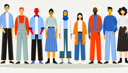 Diverse group of people standing together, showcasing unity, inclusion, and cultural diversity