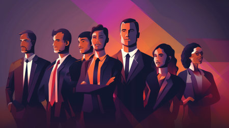 Group of business people in suits. Vector illustration in cartoon style.