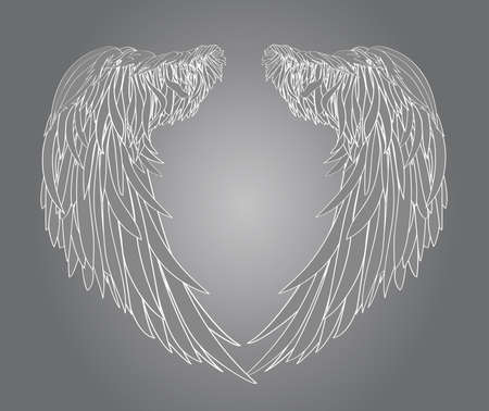 Wings. Vector illustration on white background. Black and white style.