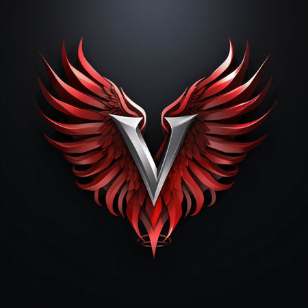 Graphic alphabet letters: letter v with wings on a black background. 3d illustration.