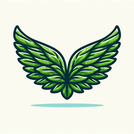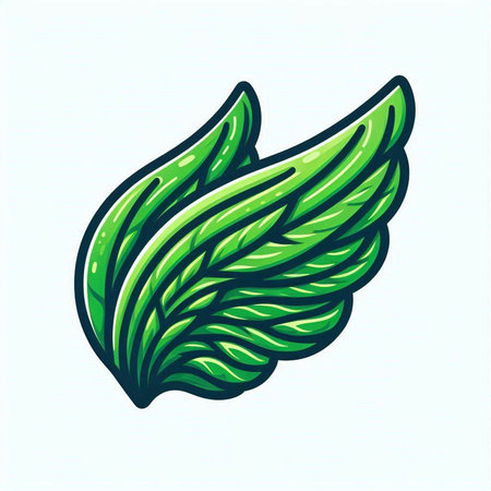 Elegant green bird wing logo, emblem, design element.
